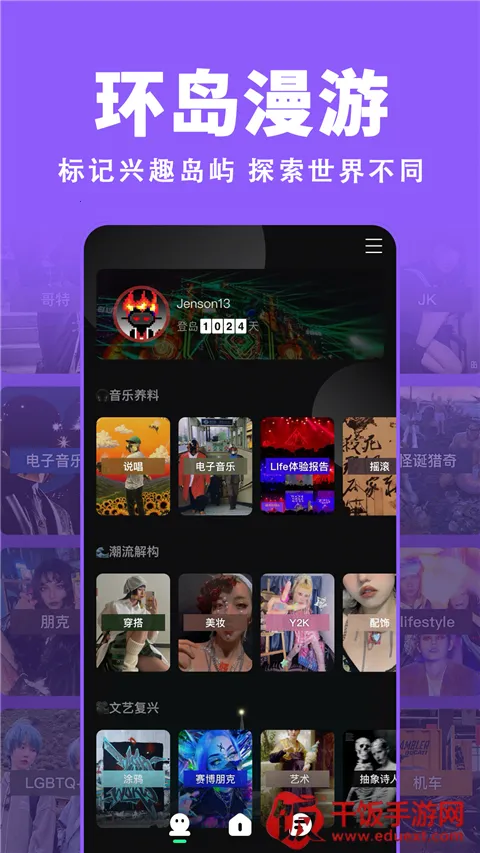 3. 独特体验:有环岛漫游可发现世界不同,这里聚集众多有脑有趣的酷哥辣妹,还能选取自己的基因结交志同道合的朋友,分享独特生活,感受不一样的动态世界。