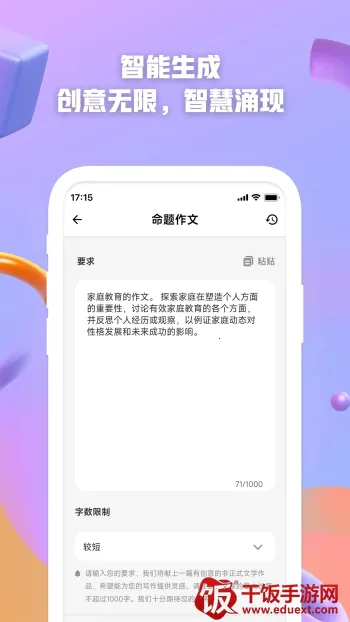 AI创作2026的核心特色十分突出。它具有高度智能化,利用先进人工智能技术,几秒钟就能轻松完成创作,且内容契合想法。其创作过程流畅,无闪退、无广告干扰。支持生成多种文本,如小说、新闻、邮件等,还能智能识别专业术语和关键词,让文章更专业。提供丰富创作模板,可按需选择。能保存创作内容并分享至社交软件,可在线编辑,随时预览效果,不满意可重新生成,以人性化方式带来贴合大众的创作体验,助您高效产出独特文章。