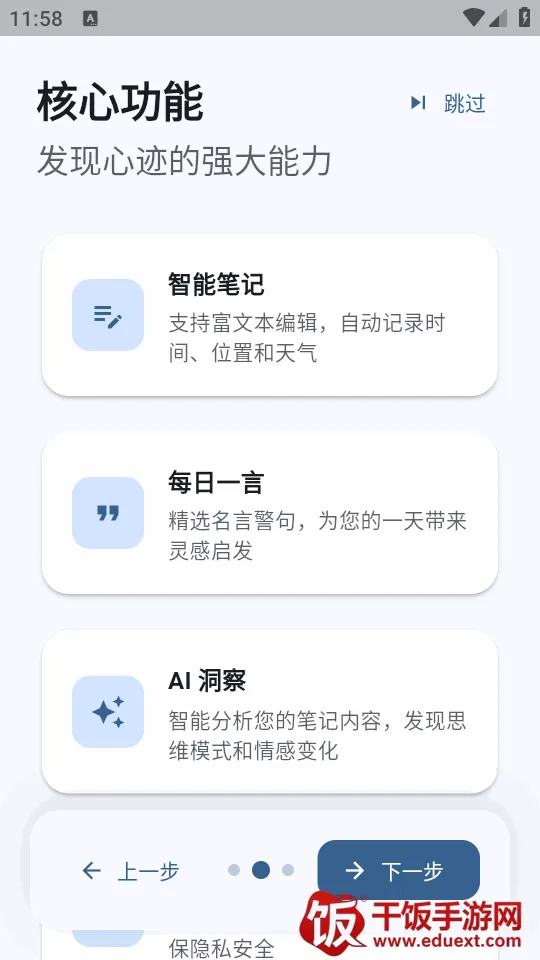 心迹ai笔记是一款接入最新ai功能的笔记工具,是专属灵感摘录本。支持富文本编辑,自动记录时间、位置和天气,有ai洞察功能,还能个性化设置。完全免费、开源,功能全面,记录分析复盘一体。