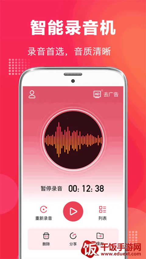 2. 场景广泛:适合各类场景下的录音,适用性强,支持录音暂停后的继续录音功能,还支持录音文件的分享功能。