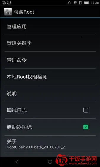 Rootcloak是一款超棒的系统工具软件,能帮安卓用户隐藏设备中的应用。它可以隐藏root状态,让你充分利用设备的root权限,享受更多功能,还能避免被应用限制,更流畅地使用那些检测root设备的应用。你能根据需要选择隐藏root状态的应用,灵活性十足。它的优势众多,比如能锁定重要应用保护隐私,轻松卸载内置软件、清除缓存,方便管理自启程序加快开机速度,管理软件联网权限杜绝偷跑流量,进行硬件级别CPU调频,一键杀掉多余进程释放运行内存。使用时,先安装rootcloak默认支持的APP,如需支持其他游戏应用则进入设置,再安装Xposed安装器,按步骤操作即可。禁用方法是在开机时不停按电源键或音量键。有了Rootcloak,就能轻松实现rootcloak隐藏root,满足你的各种需求,让手机使用更便捷。