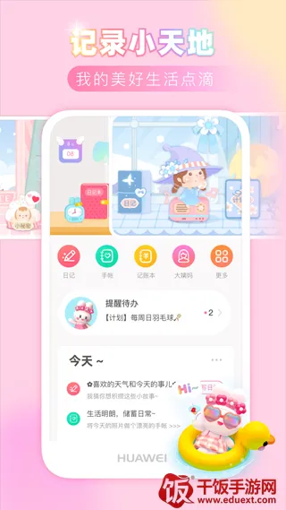 3. 多样实用功能:拥有记账本、便利贴、纪念日等功能,全面满足女生日常各种需求。