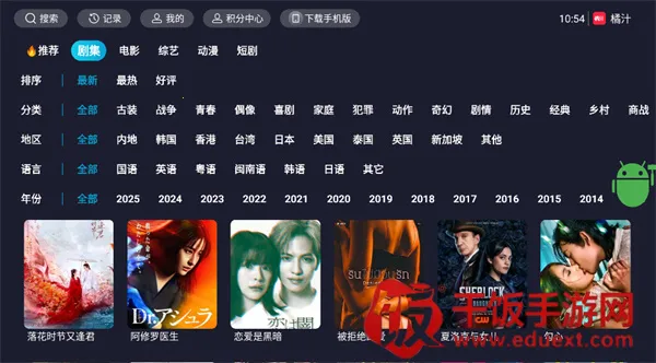 1.打开橘汁tv,可以看到首页有着剧集、电影、综艺、动漫、短剧等多个板块内容。