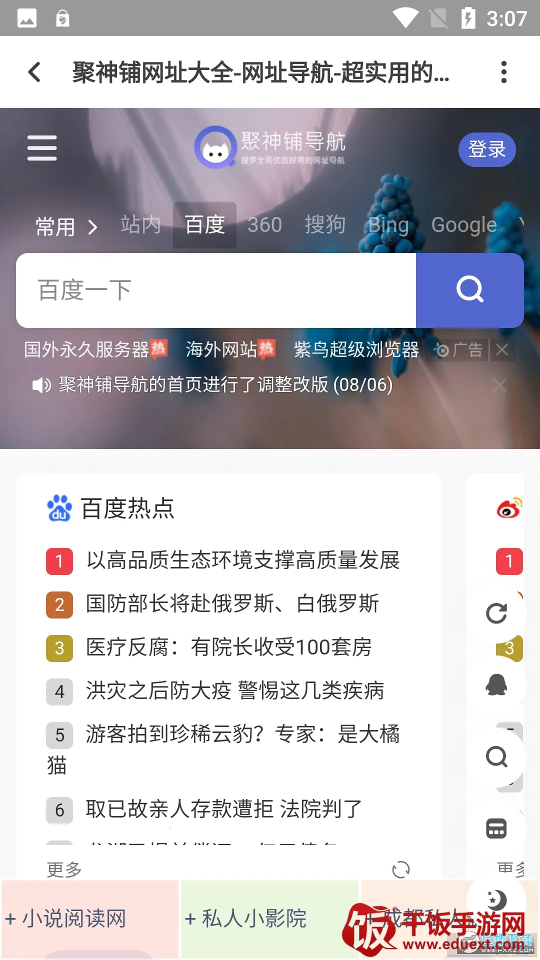 聚神铺安卓版手机版核心特色显著。它是聚合全网资源导航神器,以简洁交互界面带来优质上网体验,每日分享实用软件与超清壁纸。作为出色的视频解析工具,能快速解析各种vip视频链接,提供多清晰度下载,支持在线播放和离线缓存。界面简约无干扰,支持多视频网站解析。还可自动识别链接安全性,拦截有毒链接。搜索功能强大,输入关键字就能快速找到所需视频链接内容,满足用户多样需求,是视频解析及资源获取的得力助手。