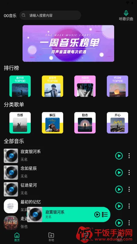 3. 功能实用:有着实用的功能,无论是歌曲排行、我的歌单还是本地音乐管理,都能满足用户需求,例如歌曲排行能紧跟潮流,我的歌单可唱出心声,本地音乐能带来纯粹聆听体验。