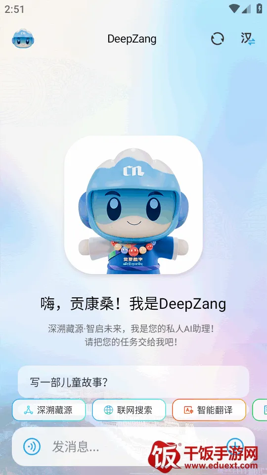 DeepZang是首款藏语AI交互应用,支持藏汉英三语互通,AI赋能全场景。多语言交互全面,翻译对话精准,功能覆盖广,适配移动端,满足藏汉英多语种使用者等人群跨语言交流需求。