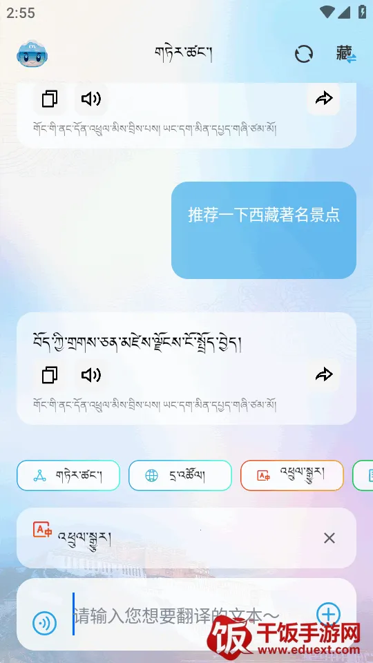 5、输入内容即可获得藏文的回复。