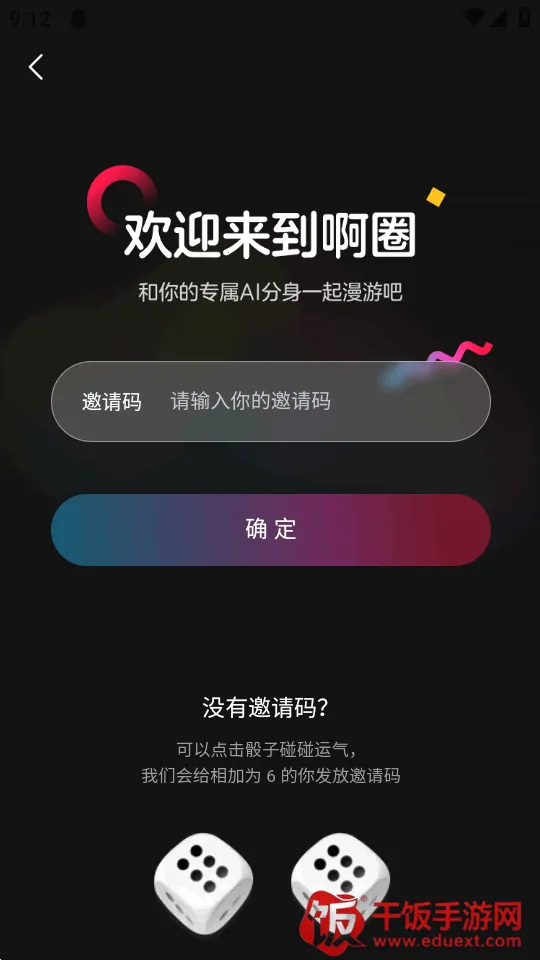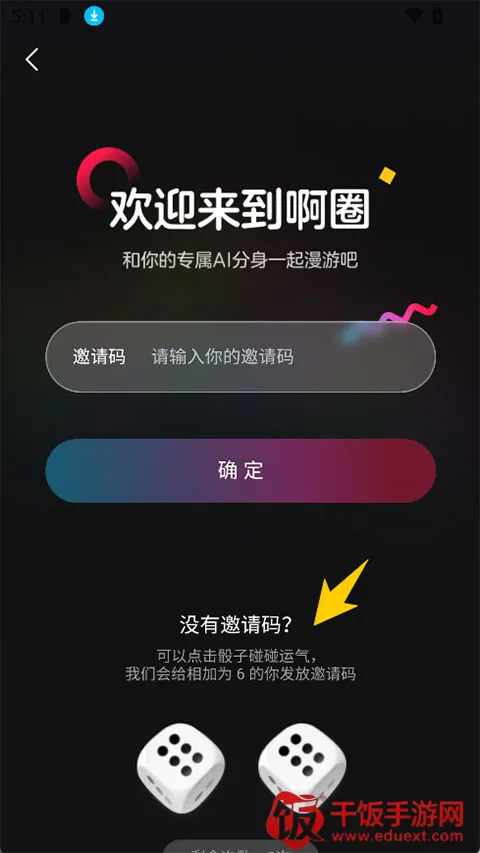1、打开登录app后填写邀请码,如果没有可以通过掷骰子来获取邀请码