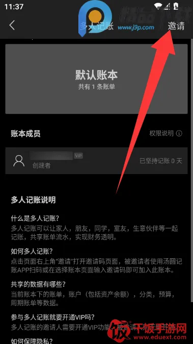 3、邀请其他人加入多人账本