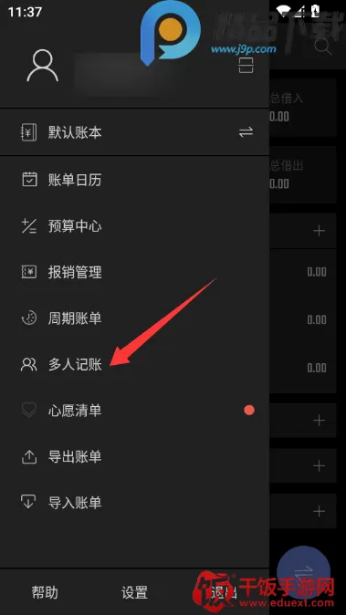 2、打开侧拉菜单点击多人记账