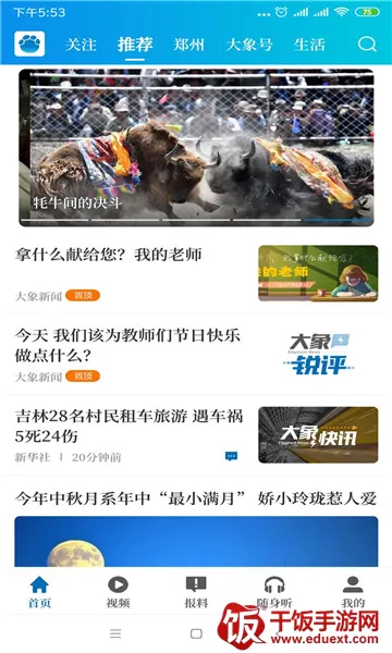 大象新闻作为河南广播电视台官方客户端,立足本土辐射全国,提供权威深度报道与实时社会动态。用户可第一时间获取河南本地乃至周边发生的各种社会事件,掌握新政与社会热点。平台集图文、直播、评论于一体,界面清爽无捆绑,支持离线观看与智能推荐。名校课堂板块覆盖全龄段,助力在线学习。无论身处何地,只需一部手机,即可全面快捷了解多方面新鲜资讯,拓展视野,丰富生活,是获取信息、互动交流的综合性优质平台。