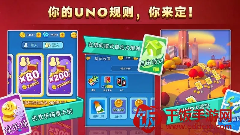 3、规则自定义,好友开黑佳选:房间模式可自定义规则,如连续24换牌、同色全出、双打等规则任君挑选,还能自定时间,让好友聚会玩得更欢乐。