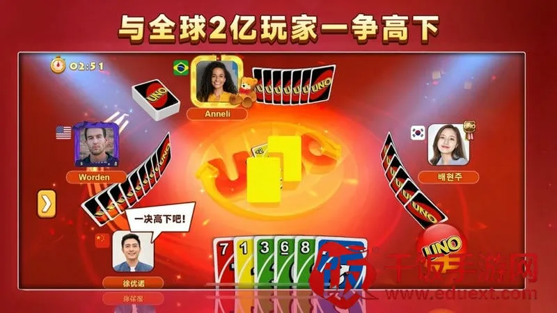 2、赛事丰富,竞技欢乐:开启UNO世界杯玩法,全球204个国家和地区的玩家参与,中国区第一名将代表中国出战全球排行。还有赛季锦标赛、大奖赛、巡回赛等各项丰富赛事可随时参加,主打欢乐竞技。