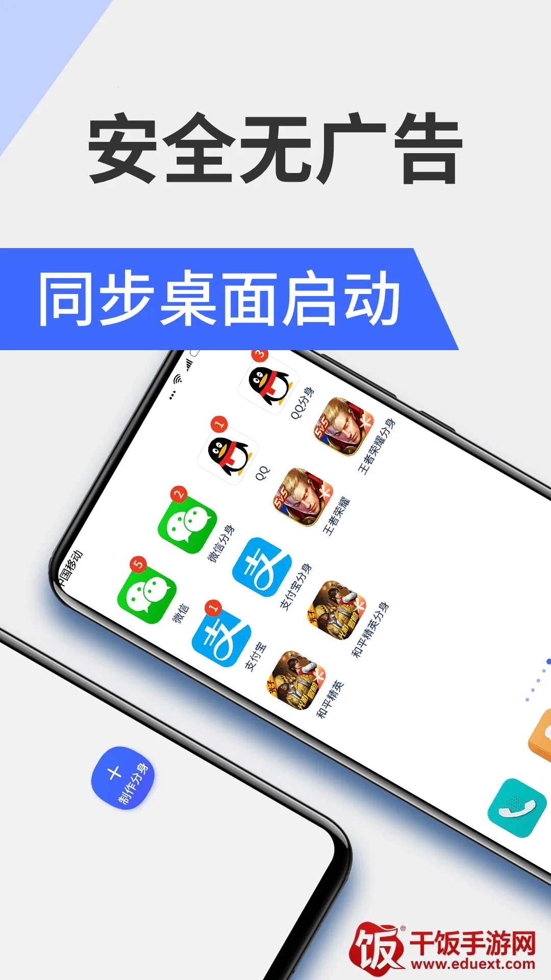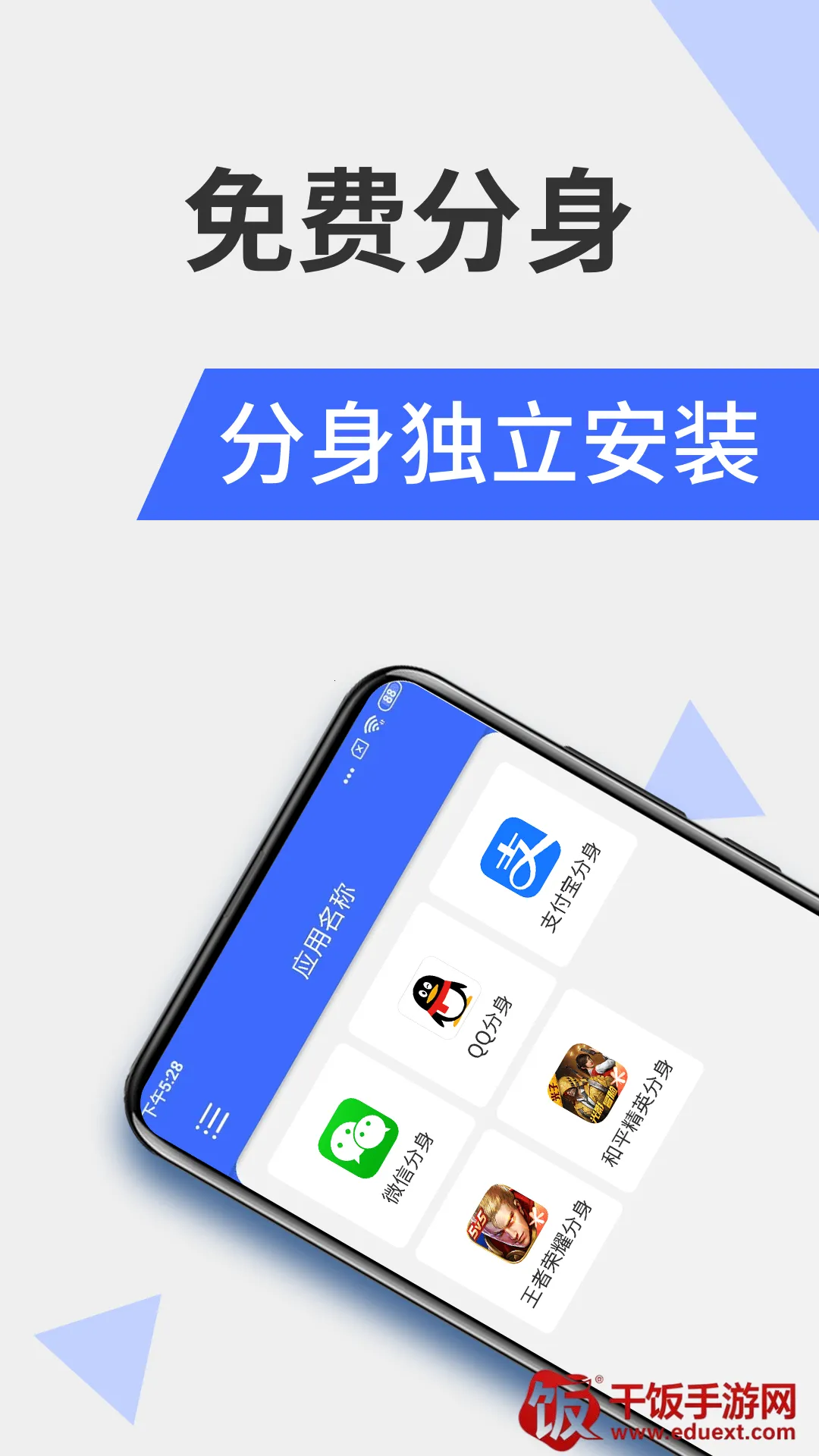应用双开分身:免费支持微信、QQ、淘宝等所有应用双开分身,双账号同时在线,畅享更多欢乐。