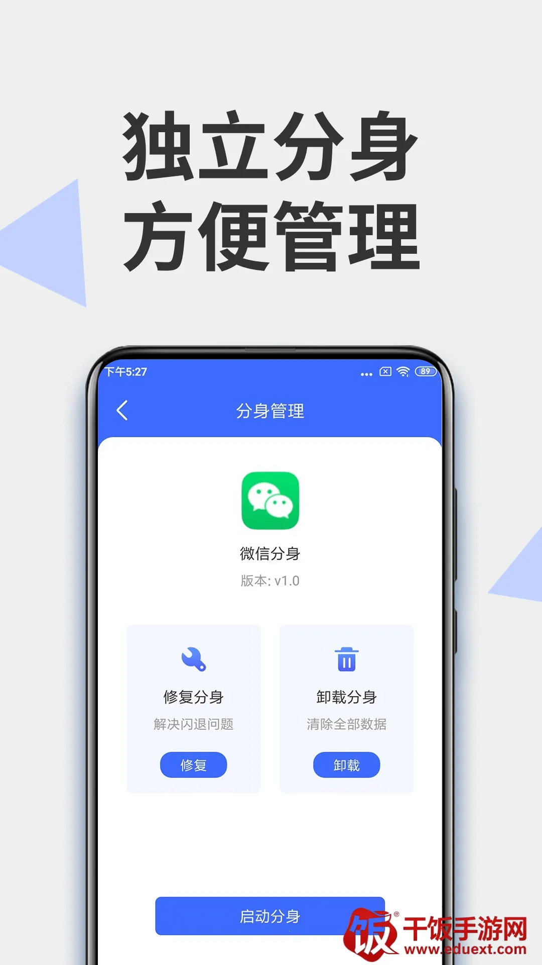 微分身术2026官方最新版本是上海趋致信息技术有限公司打造的应用多开工具,支持微信、游戏等多开,无需root,功能安全,能双开免费、无限多开,有应用锁和私密空间,保护隐私,适用多类人群。