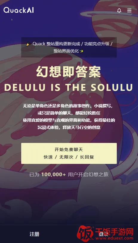 QuackAI是一款超棒的社交聊天软件,能满足你多样需求。它主打高自由度和沉浸式叙事体验,让你与预设AI角色自由对话,编织独特故事。操作超简单,下载安装后注册账号,进入主页选心仪角色就能开聊。创建角色也不难,去捏崽鸭页面点击创建,上传头像、输入信息发布就行。软件优势超多,聊天自由度高,无束缚感;有多种性格背景的AI角色等你探索;叙事共建超有趣,能一起编故事线。还能自定义智能体,解锁多样语音音色,支持蓝牙配网实现语音控制。不管你是想找有趣伙伴聊天,还是写小说编故事找灵感,它都能满足,给你带来一场语音与想象力的盛宴,快来体验吧!