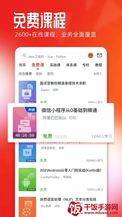 1、学习体验流畅高效,所有课程均采用高清录制,无广告干扰,让你沉浸式学习。