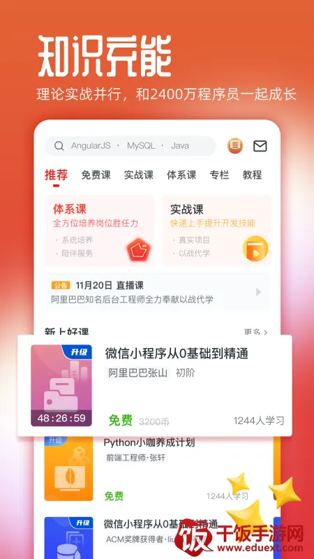 慕课网最新手机版核心特色显著。课程覆盖多领域,400余位专家亲授,带来实战经验与前沿知识。以短视频为主,每节不超10分钟,支持倍速播放,适合碎片化学习。支持离线下载,不受时空限制。课程结合企业案例,模拟开发流程,助您掌握实际技能。还设有在线编程工具,互动性强。提供详细课程笔记和技术手册,方便复习。互动式课程设计,课后可讨论交流,加深理解,是提升IT技能的优质选择。