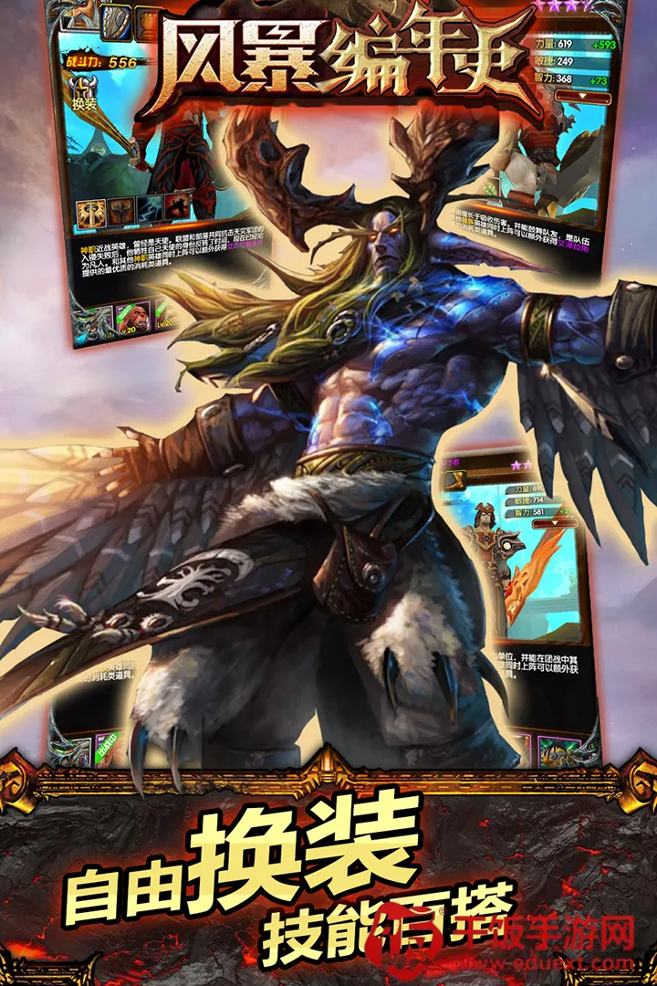 3. 多样英雄系统:数百位英雄可供召集,如山丘之王、恶魔猎手等,英雄有阵营、品阶、等级、属性、技能等,培养收集战斗围绕英雄展开。