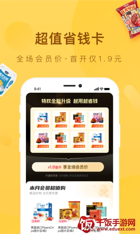 好食期是专注食品销售的电商平台,海量商品应有尽有,采用日期越近越便宜的定价模式,保质期透明。全场特卖低至2折,严选品牌,安全有保障,还提供完善物流配送与售后服务,1.9元可开通超值会员。