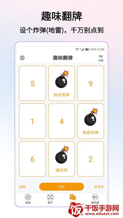 2. 玩法丰富:不仅有独创的多层转盘玩法,多个转盘组合转动更刺激,还有必出规则贴心实用。此外,3D骰子摇骰子对决超真实,趣味随机数范围极大,能设幸运数字等,翻牌设置隐藏炸弹牌增加刺激感,更有抛硬币、指尖转盘等玩法持续更新。