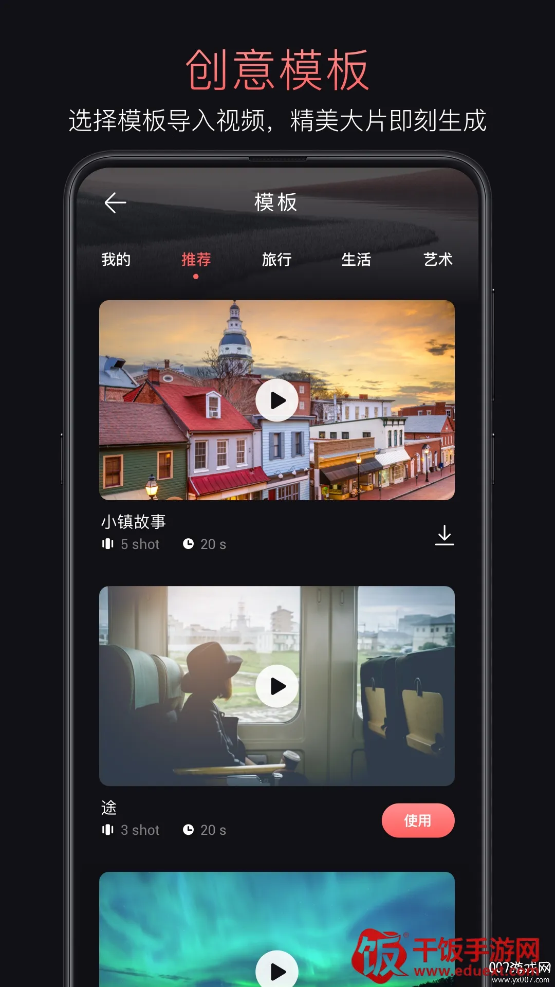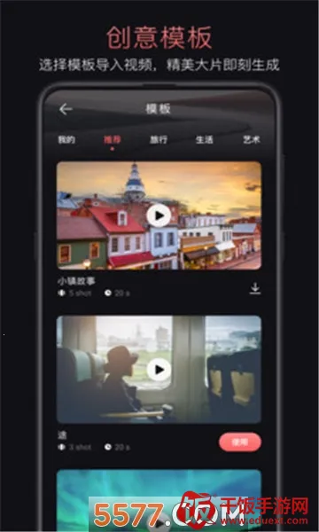 2、丰富模板:提供多种风格视频模板,像VLOG、航拍、旅行、卡点视频等,满足不同场景需求。模板由专业设计师精心打造且持续更新,涵盖韩综风、小清新、炫酷等多种风格,随心选择,导入片段就能生成精美大片。