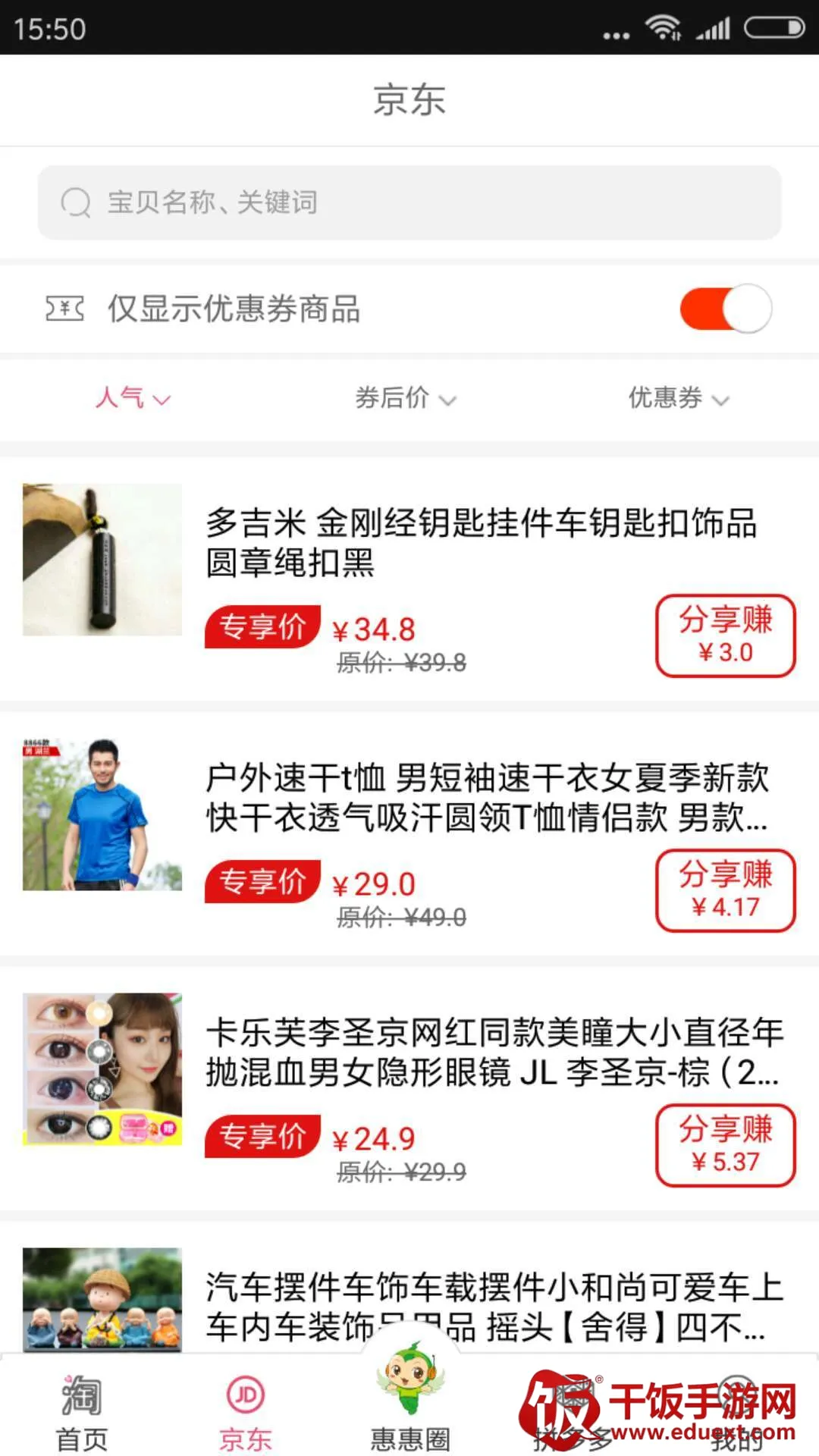 惠得安卓版手机版核心特色突出。**整合全网优质产品**,资源超全,带来众多性价比高的商品,提供最便捷购物方式。能让用户快捷买东西,放心网购,体验超棒。海量商品任你选,点击即可挑选喜爱的,还能随时领优惠券。与多家电商合作,上万商品种类、上百万优惠券,每日更新,领券后可跳转下单,享受购物保障。内部有大额优惠券,覆盖众多优惠商品,严格筛选优质商品,分享优惠能赚收益,专属客服随时在线服务。