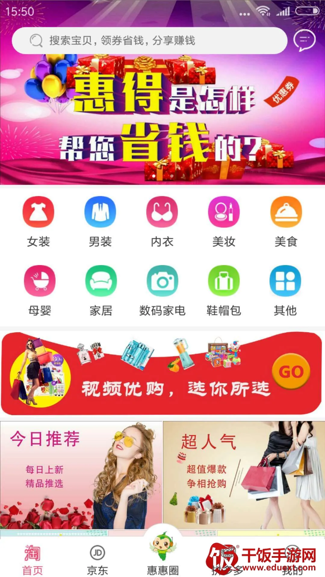 省时省力:惠得安卓版手机版支持分类查找,家居鞋包服饰百余款宝贝随你挑。