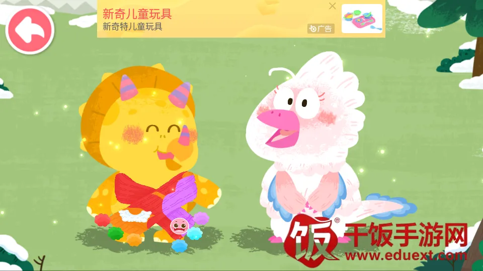 4. 在这里,玩家能和恐龙朋友一起探索糖果星球、编织围巾、制作小蛋糕,还能学习帮助朋友、分享美食礼品,掌握增进友谊的小窍门,在玩中学、乐中成长。