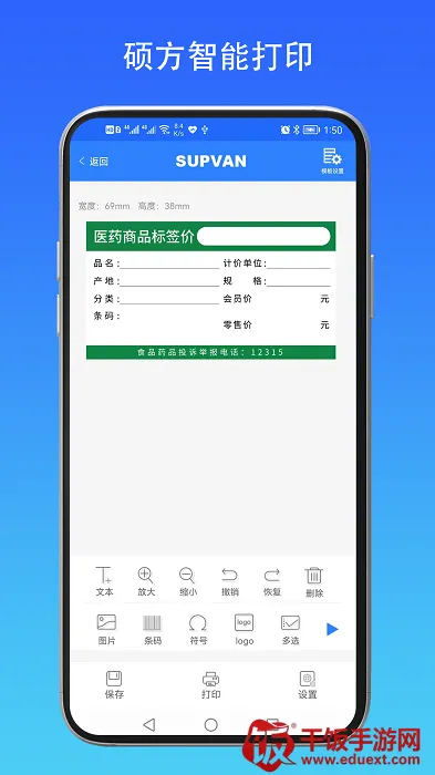 硕方智能打印是与智能打印机配合的工具,操作简单,支持蓝牙、WIFI 连接,可共享笔记格式、绑定 Excel 数据,支持多种字体及图片打印,能自创工业标识,实现多种文档、图片等的便捷打印。