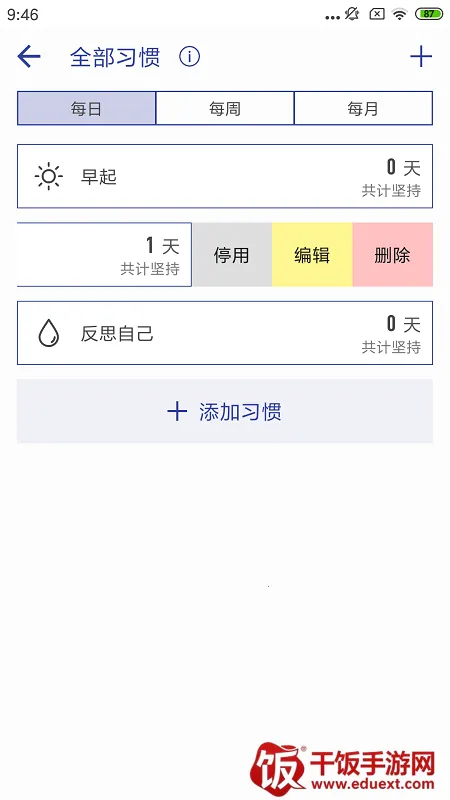 简约日常是习惯追踪管理应用,界面简洁,色调低沉可靠。能自定义添加习惯,支持每日打卡、习惯补签。可组合小目标助减肥、规范作息等,还能合理规划时间,随时更改,修复了闪退问题。