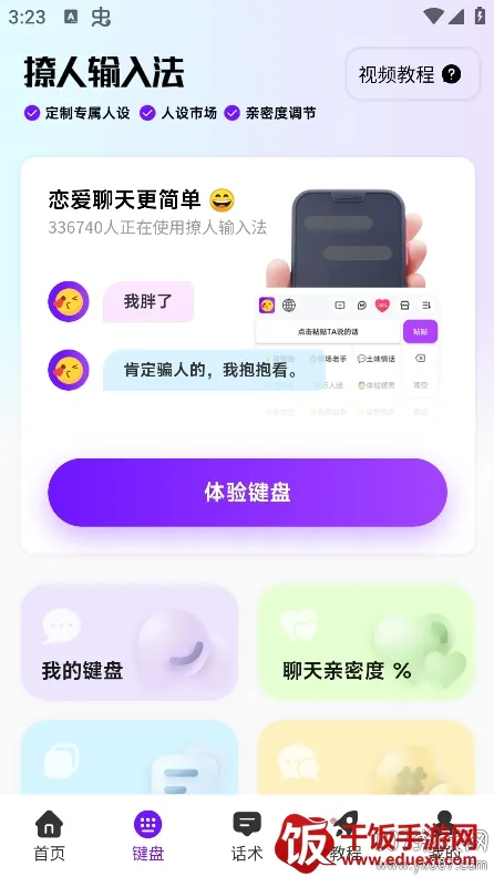 其优势众多,是超好用的输入法打字工具,能让你撩人而不自知。拥有超丰富的优质聊天模板,适用于生活中各种场合。还可根据聊天情况调整亲密度,一键智能调控很简单。并且支持自定义定制人设,为你匹配满分回复,各种功能免费使用,还有新手视频教程,不怕不会聊天。在聊天方面能给人极大助力,轻松拿捏与心爱之人的互动节奏,是一款非常值得尝试的输入法。