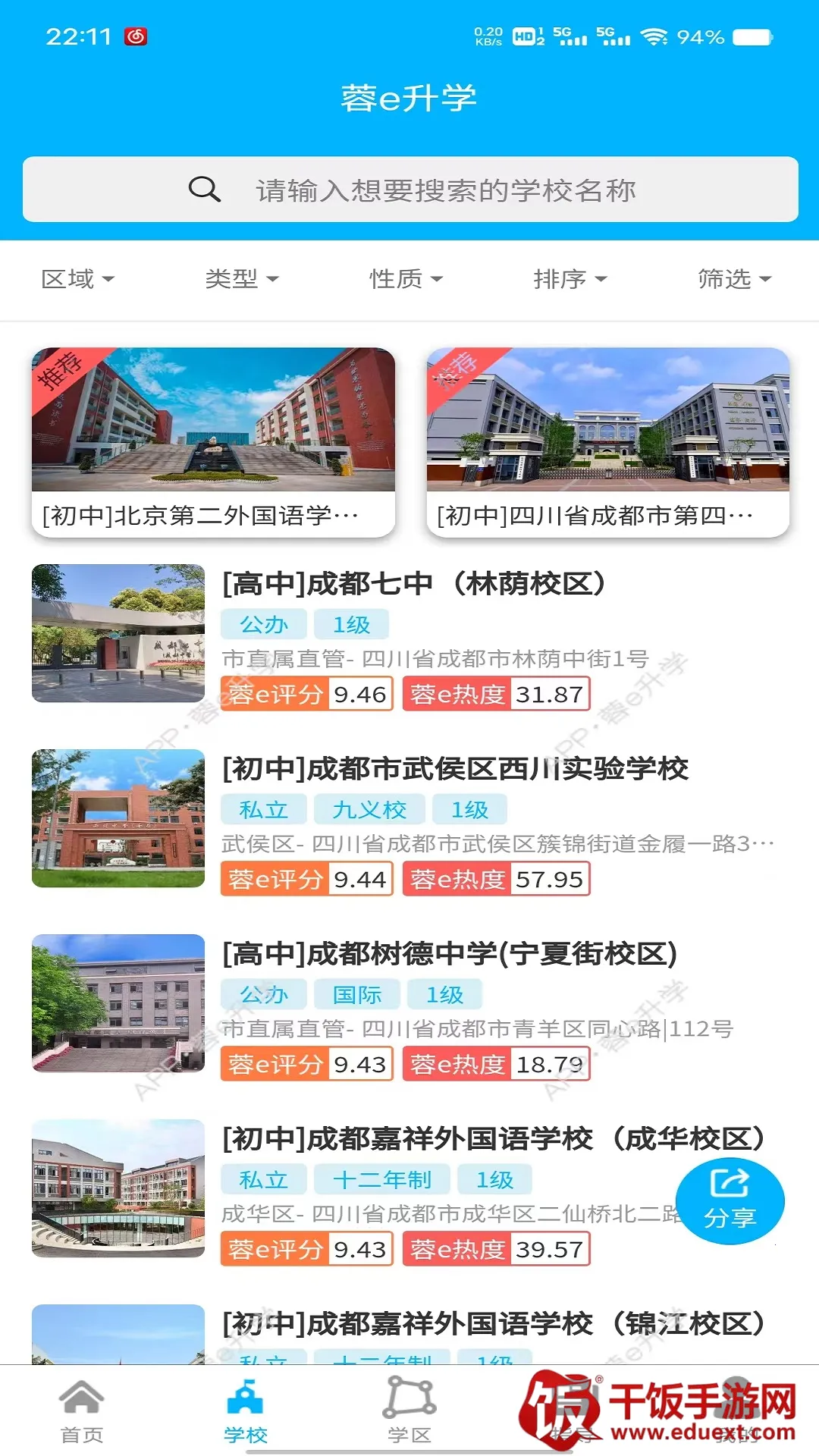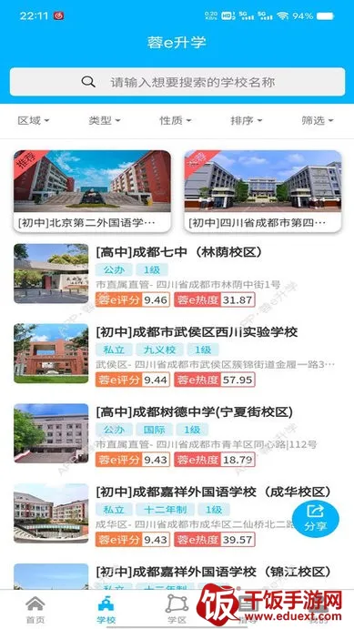 蓉e升学能帮您解决孩子升学的诸多困扰。它是专注成都地区K12教育的智能升学平台。有本地化政策解读,联合教育主管部门实时更新入学政策。智能选校评估,依据学生户籍、学籍、成绩及家庭诉求,通过多维算法推荐合适学校。学业成长追踪,记录学生各阶段情况,生成学业发展曲线与薄弱环节分析。还有家校互动桥梁,方便家长与教师、学校沟通。功能丰富,升学政策库汇集各阶段招生政策,学校档案库提供500多所中小学详细信息。个性化规划能定制升学路径与学习目标,测评中心提供多种专业化评估工具。家长课堂有系列专题讲座。答疑社区由专业人士组成。关于小学排名,虽然软件未直接给出,但能通过其丰富功能辅助您综合了解学校,为孩子升学科学决策,助力您解决择校焦虑等问题,让孩子升学之路更顺畅。