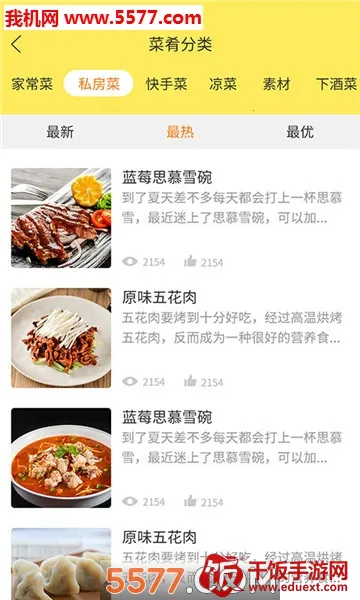 1. 这里提供各种口味的菜,按不同类别分类,菜系丰富,涵盖鲁川粤闽苏浙湘徽八大菜系的经典美味菜品烹饪视频,还有早餐、午餐、下午茶、晚餐等各类选择,甚至能教做甜品、饼干、蛋糕等点心,满足多样需求。