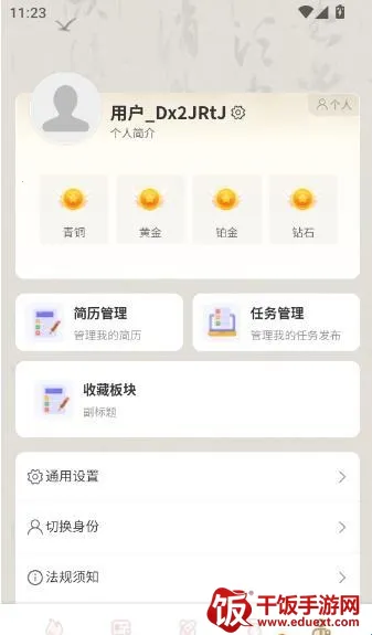 2.到达个人中心管理界面,找到“简历管理”按钮功能点击进入下一步