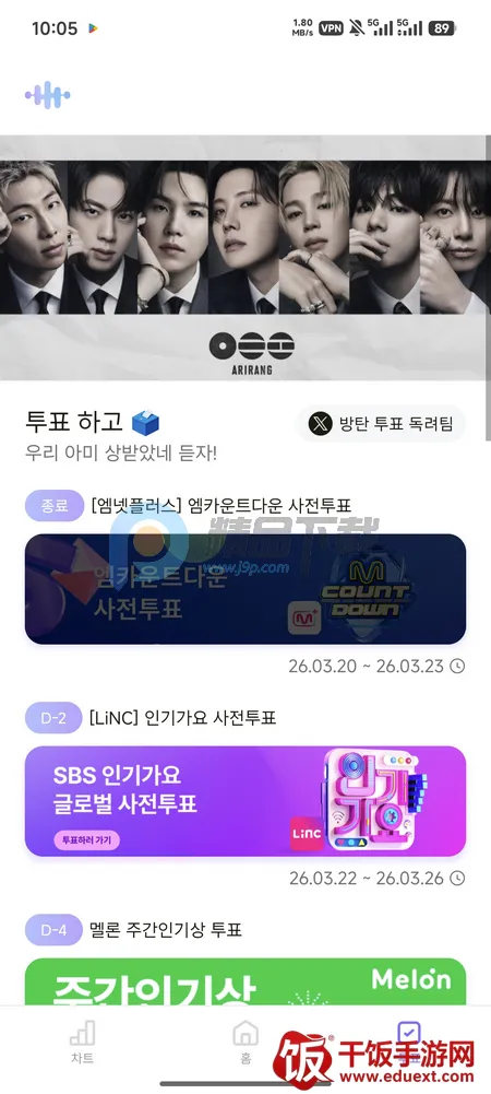 ARMYBADA投票是一款专为粉丝打造的音乐应援神器。它能整合音乐相关操作与活动信息,提供高效便捷体验。**一键查看并参与音乐流媒体播放投票及活动日程**,还能快速引导使用官方音乐平台,简化播放等流程。可创建专属歌单,通过时长统计精准管理曲目。能快速查看BTS音乐排名趋势,提供回归等活动投票日程实时通知。集中管理分散投票信息,轻松跳转多平台投票链接,虽不直接提供服务,但给予指导支持,让应援更轻松。