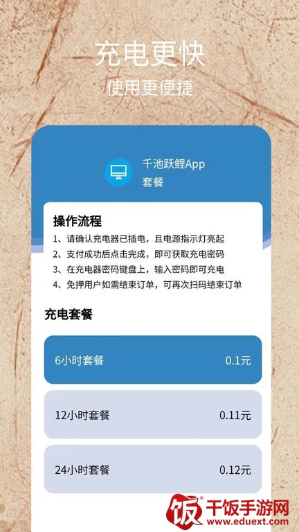 千池跃鲤最新手机版是专注移动设备充电的智能应用,可轻松租共享充电宝,解决电量焦虑。按天计费,功能智能,含电池检测、分析等。特色有客服支持、商家加盟,个人中心完善,提供便捷租借服务。