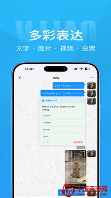 2. 功能丰富:支持私聊与群聊,多种消息类型任您选择,还有音视频通话、表情互动等趣味功能,满足多样沟通需求。