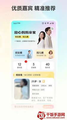 1. 智能匹配:基于实名认证与子女资料库,支持自定义年龄、职业、学历等择偶条件筛选,精准推荐契合的婚恋对象,轻松帮您找儿媳或找女婿。