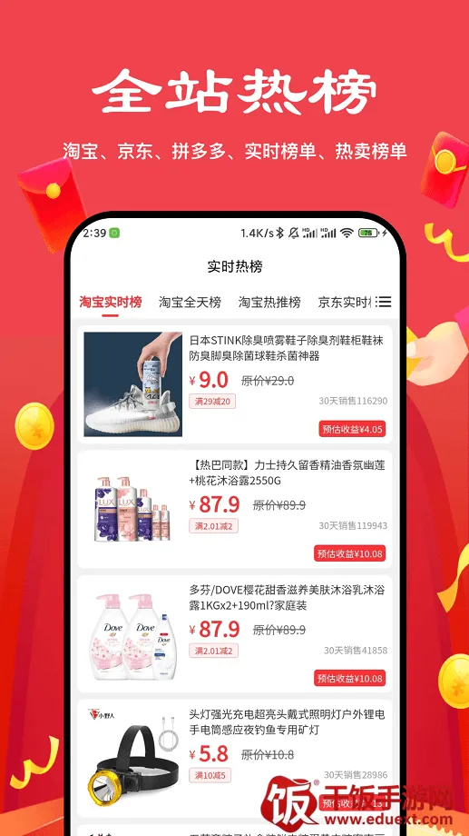 2. 平台合作全:与淘宝、天猫、京东、拼多多、唯品会等全网知名电商平台合作,提供大额优惠券和隐藏优惠券,更有超高返利比例。
