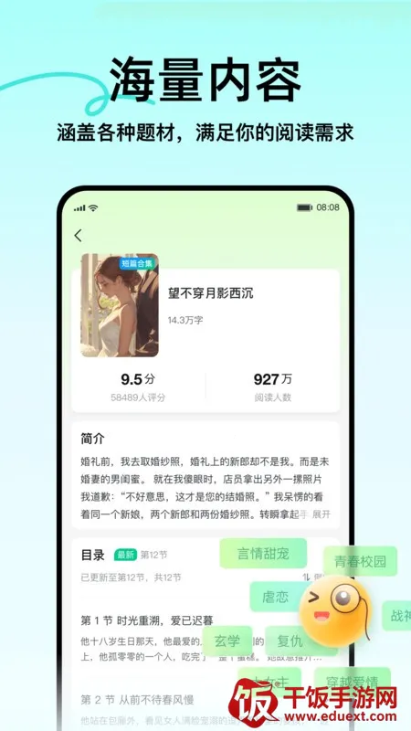1. 海量小说库存:这里拥有丰富的小说资源,涵盖各种类型和题材,无论是甜宠、都市、玄幻、悬疑,还是校园青春等,都能满足不同读者的阅读喜好,让你畅游在多样的故事世界中。