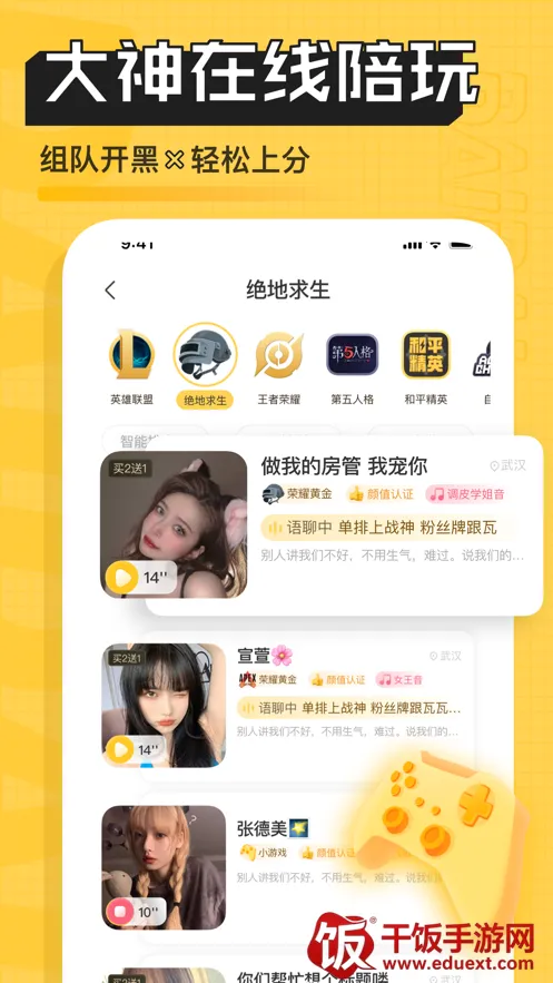 1. 海量大神:百万游戏大神入驻,无论何种游戏类型,都能为你匹配到合适的大神陪玩,如王者荣耀、和平精英等,技术超强服务贴心。