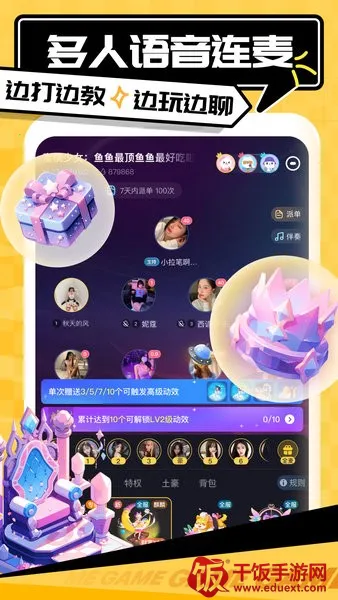 平台不仅有游戏陪玩,还有语音互动交友功能。在多人语音聊天室里,能实时声音速配,和海量优质高颜值大神处CP、连麦K歌、相亲娱乐。全新的破冰小游戏,如恋爱飞行棋、你画我猜等,能让你快速与他人破冰,告别孤独尴尬。