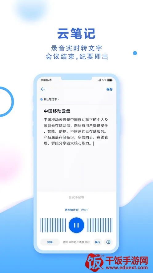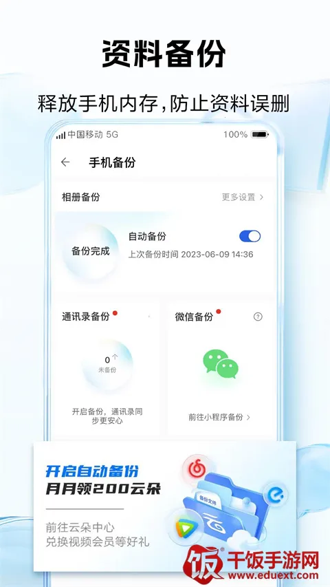 中国移动云盘2025官方最新版本核心特色:安全保障强,数据加密保护隐私,有运营商级别防护。不限速超流畅,所有用户无差别享受高速上传下载。多端能同步,APP、PC、Web、TV等多终端无缝连接。容量超大,初始20G,参与活动可轻松领取1T、2T等更大空间。智能超便捷,智能云相册自动分类图片,还有云笔记、PDF互转等实用功能,满足多样需求。