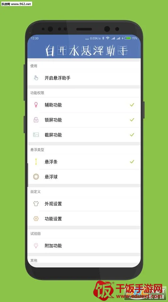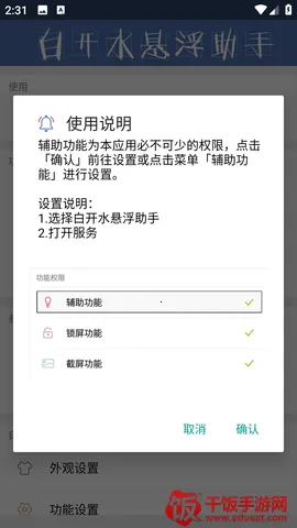 这款软件的优势在于,它集成了清理内存、手电筒、一键锁屏等快捷操作功能,还能显示悬浮时间,支持智能通知。通过不断升级,它修复了多个版本出现的闪退、功能显示异常等问题,如修复了部分机型首次开启悬浮条或悬浮球时闪退的bug。同时,它还加入了开机启动、手机横向隐藏助手等新功能。如果你正在寻找一款实用的悬浮工具软件,白开水悬浮助手是个不错的选择。