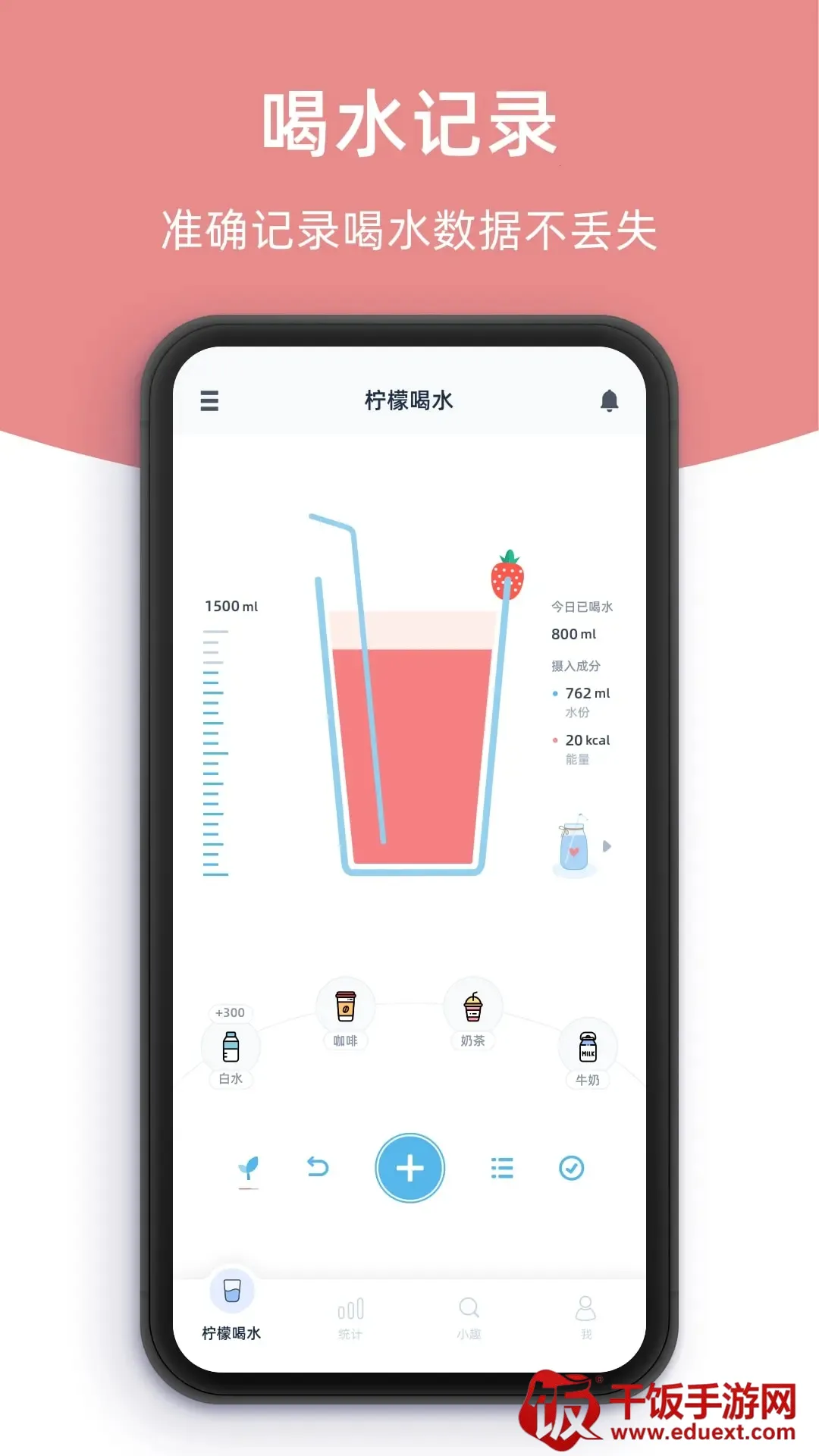 3. 记录高效准确:选择饮品类型后,可快速保存饮水记录,数据准确且不丢失,即便重启也依然存在。
