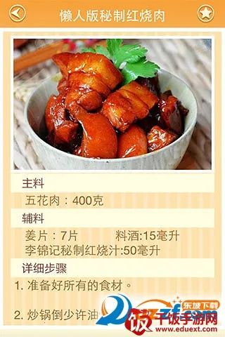 懒人食谱2025官方最新版本核心特色:拥有超十万精品菜谱,免费任你学,天天能换花样吃。菜品搜索功能强大,轻松找到所需。每道菜品描述详尽,搭配高清图片,做菜超轻松。还有贴心浏览记录。美食达人手把手演绎优质图文菜谱,高清讲解步骤,学做菜超简单。能满足全家饮食需求,品类超齐全。永久免费升级,菜谱持续更新完善,始终保持新鲜感。一键收藏、完美搜索,方便随时查询喜爱菜谱。