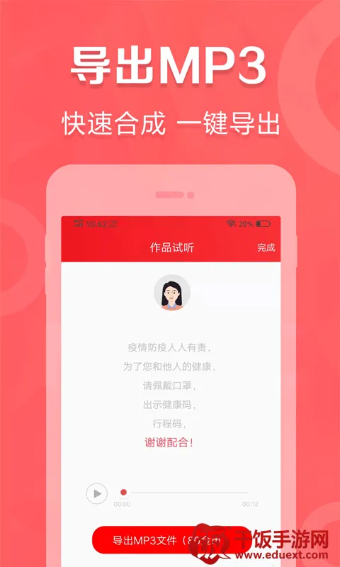 你是否在寻找一款能轻松制作出吸引人的广告录音软件?那就来看看这款超棒的软件吧!它采用智能AI拟人技术,能把文本快速转化为真人语音,主播声音种类超多。不管是商场店铺广告叫卖、地摊叫卖还是地铁播报等场景,它都适用。有成熟的语音合成技术,还有海量背景音乐和配音文本模版供你选择。操作特别便捷,一键就能实现文字转语音合成配音。支持导出多种格式,多平台分享超方便。蓝牙连接更轻松,无需导出文件。特色主播选择多样,风格丰富。能为你打造优质的配音体验,让你的广告脱颖而出,赶紧试试吧!
