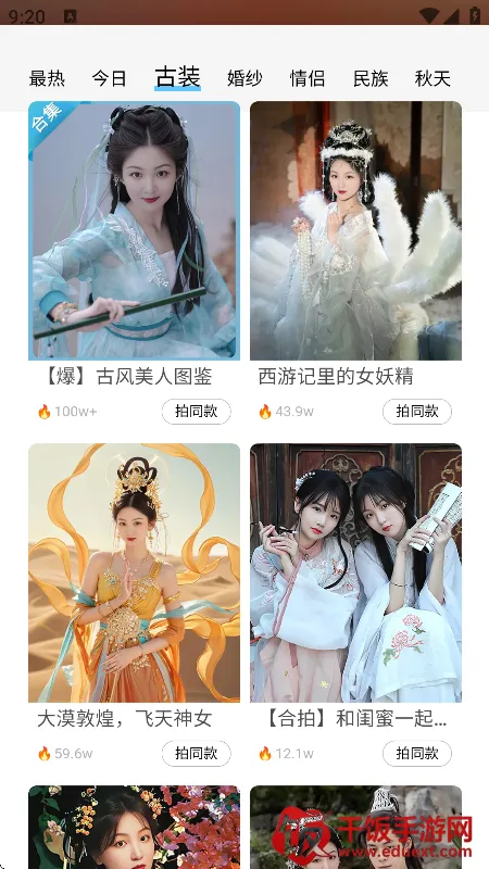 想轻松拥有精美照片吗?出片啦软件就能满足你!它提供多种模板,古装、婚纱照、证件照等都能快速搞定,哪怕没摄影基础也不怕。能随时随地变换妆容和风格,还融入超多节日元素。像飞天女神的拍摄,无需去沙漠,软件里就能实现。使用难度不高,有详细使用说明。作品都是高清无水印、不模糊的。方便换发型和服装,效果毫无违和感。软件亮点满满,可调整亮度、对比度让作品更清晰,上传自拍照融入模板就能得精美图片,还能生成漂亮视频并搭配喜欢的音乐。数百个主题满足不同需求,可自由切换。软件内容丰富,不定时更新素材,能找到当下热门流行元素,能获得民族服装、漂亮婚纱照等。用出片啦,轻松拍出满意作品!