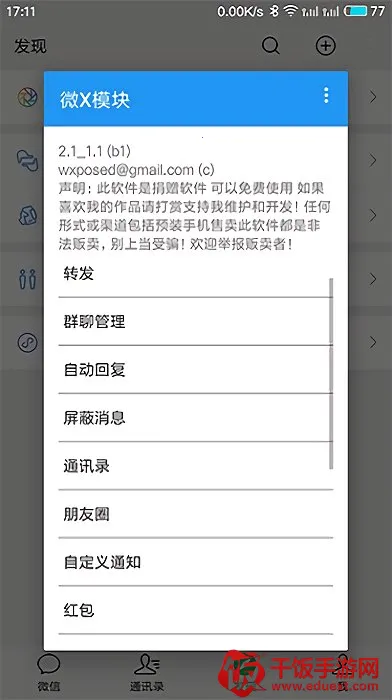 微X模块官方最新版汇聚众多微信插件,有防撤回、转发、自动领红包等功能。免费且不闪退,可防止微信消息等被撤回,支持语音、图片等转发,通知可个性化设置,操作简单,让微信体验更高效。